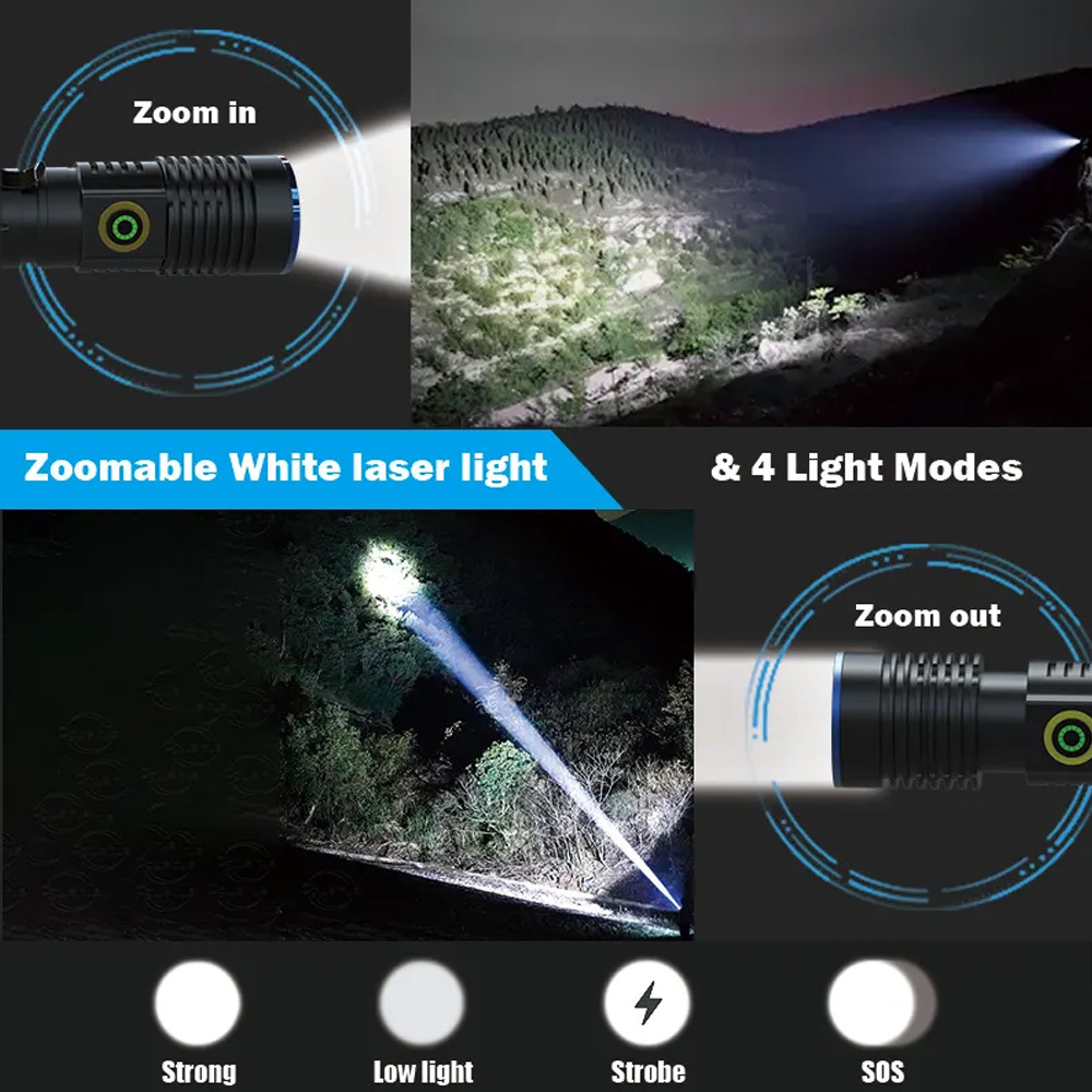 - High Lumen Output: Capable of producing extremely bright light, often in the range of 1000 - 3000 lumens or more, to illuminate dark areas effectively.